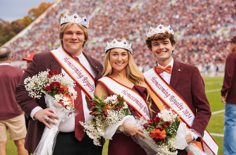The Homecoming Royalty is passionate about Virginia Tech, its traditions, and the values of Ut Prosim. They have extensive leadership experience in at least one student or service organization and are able to describe how their engagement has shaped their time at Virginia Tech. Royalty members are expected to carry out an event that is unique to supporting a specific cause or platform at Virginia Tech that positively impacts the student body.